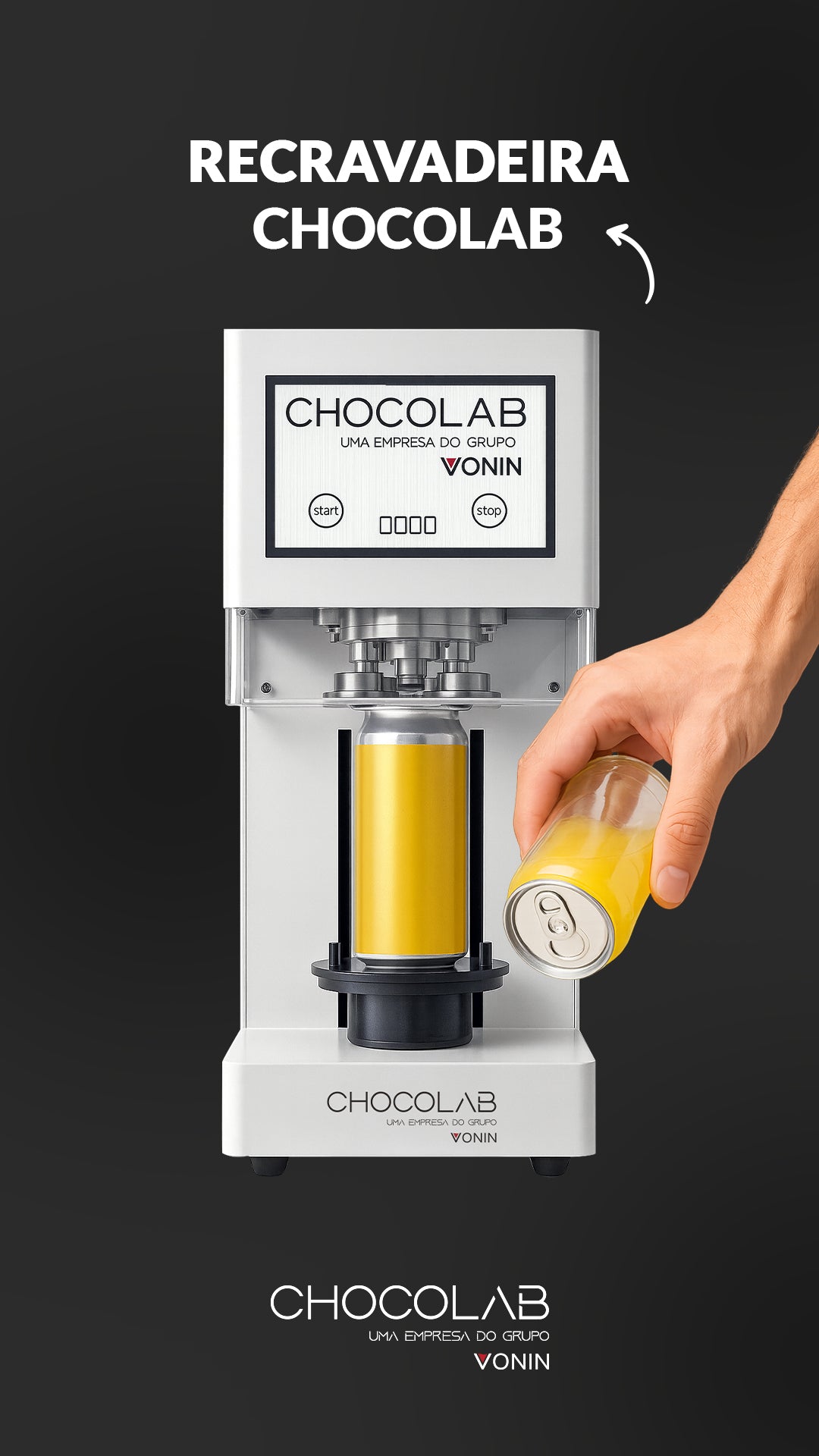 A Recravadeira Automática Chocolab une precisão, velocidade e design inteligente para transformar o modo como bebidas e alimentos são embalados.